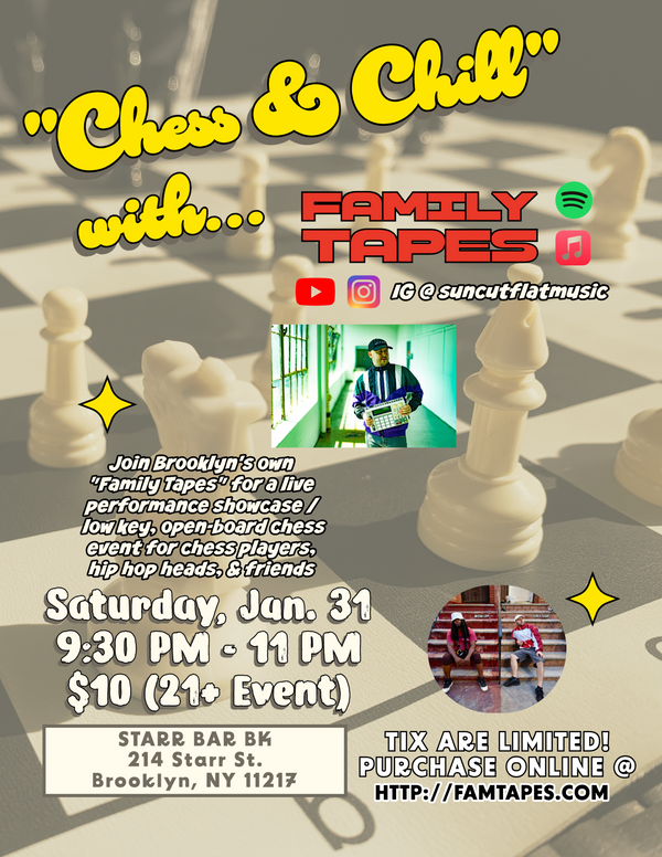 TICKETS: Chess & Chill with Family Tapes – Live @ Starr Bar Brooklyn, NYC – 1/3 – Sun Cut Flat & Family Tapes – Official Store